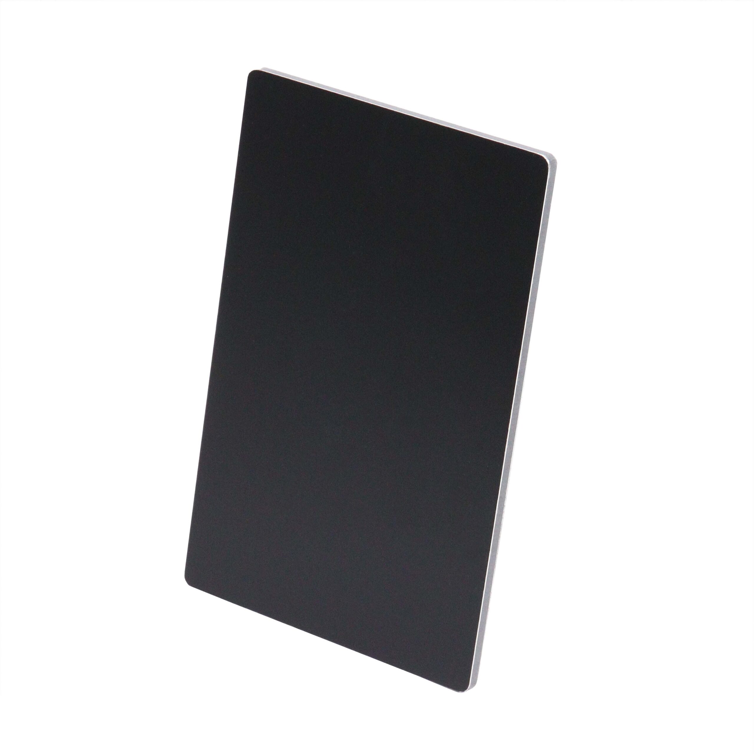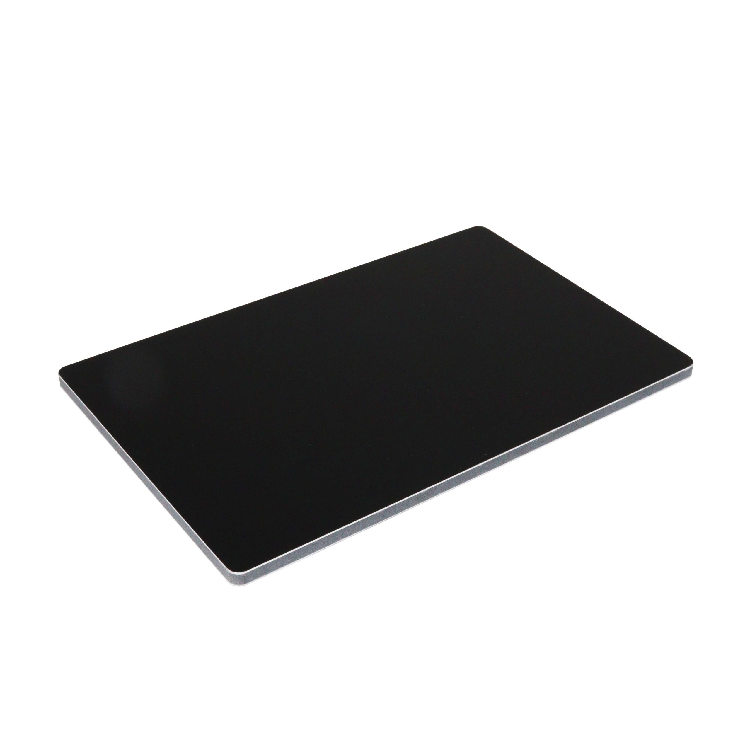 Zwarte aluminium composiet plaat. Speciale coating met ca. 30% glans. Geschikt voor binnen & buiten. Vraag een offerte aan voor bewerkingen.