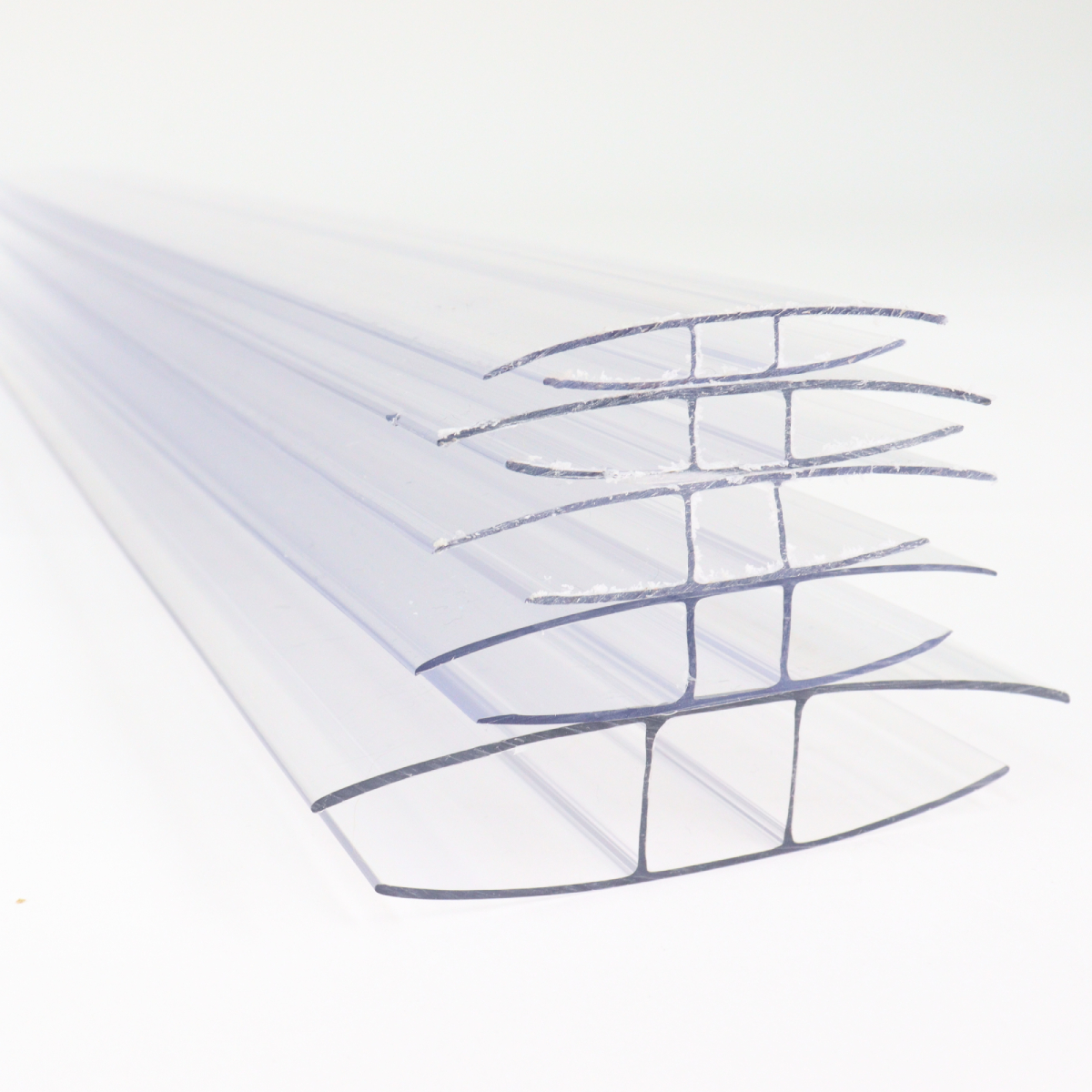 Polycarbonaat H-profiel met een klembereik van 16 mm. Ideaal voor het verbinden van kanaalplaten. UV-beschermd, licht van gewicht en makkelijk te monteren.