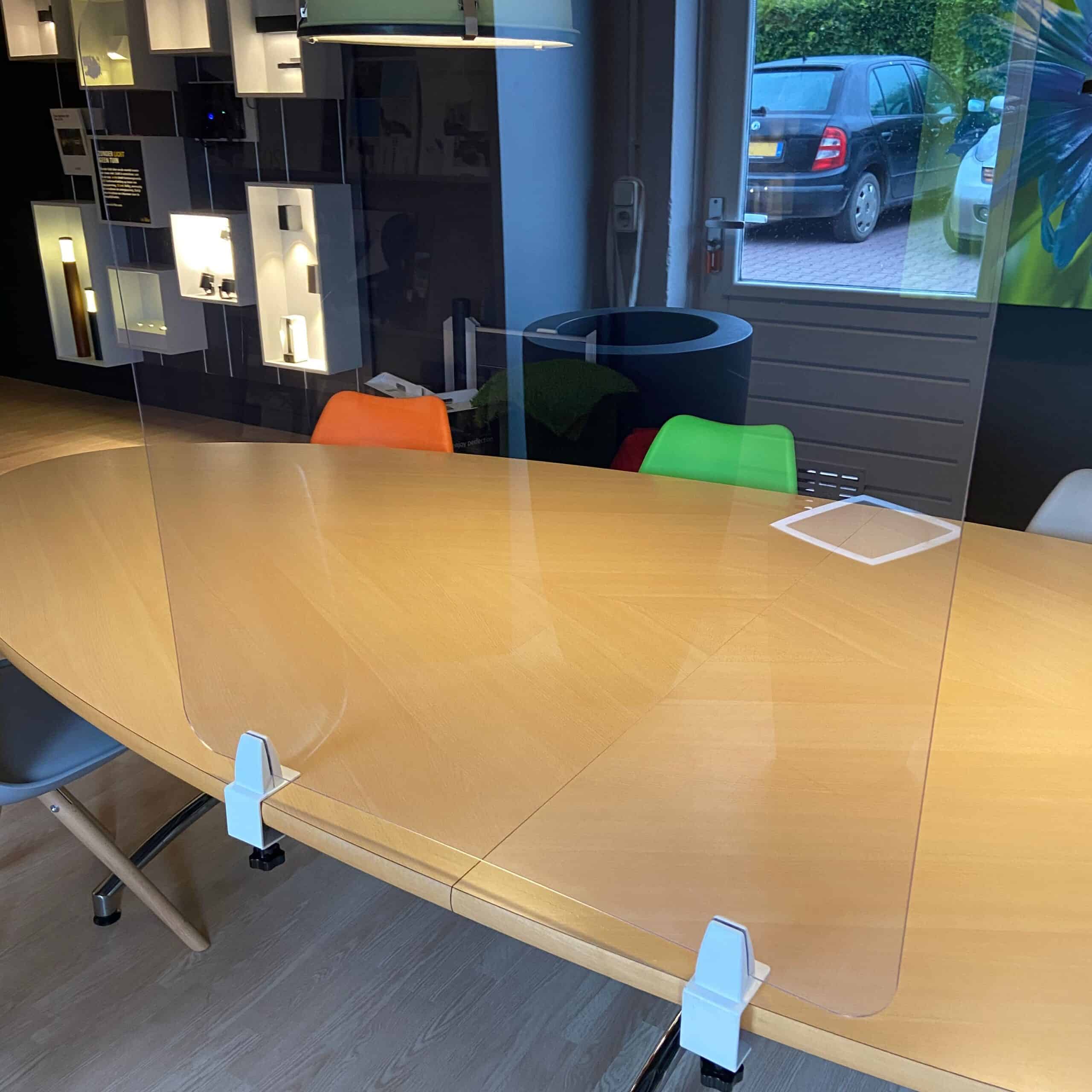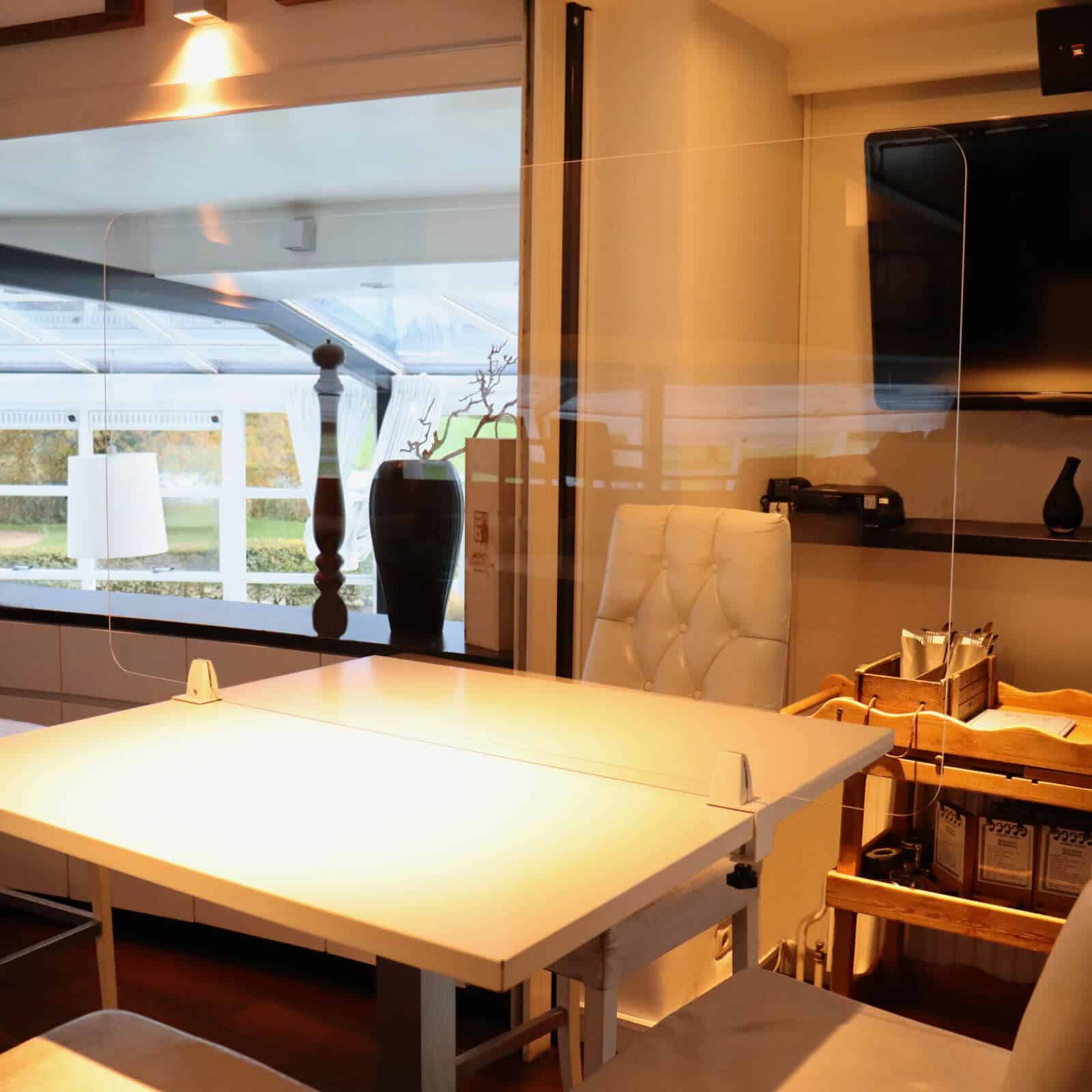 We merken dat iedere klant een andere behoefte heeft met betrekking tot zijn of haar kuchscherm. De één wenst een kantoorscherm mét doorgeefluik, ofwel uitsparing, maar daarnaast een aantal eenvoudige schermen op maat. De volgende klant is een horeca ondernemer die graag al zijn tafels wil afschermen, en weer een ander wil alleen een scherm in zijn of haar ontvangstruimte. Om deze reden hebben we ‘plexiglas kuchscherm multifunctioneel’ ontworpen. Dit is een kuchscherm volledig op maat, precies naar wens te realiseren. Zo kunt u zelf uw complete opstelling creëren zonder obstakels.